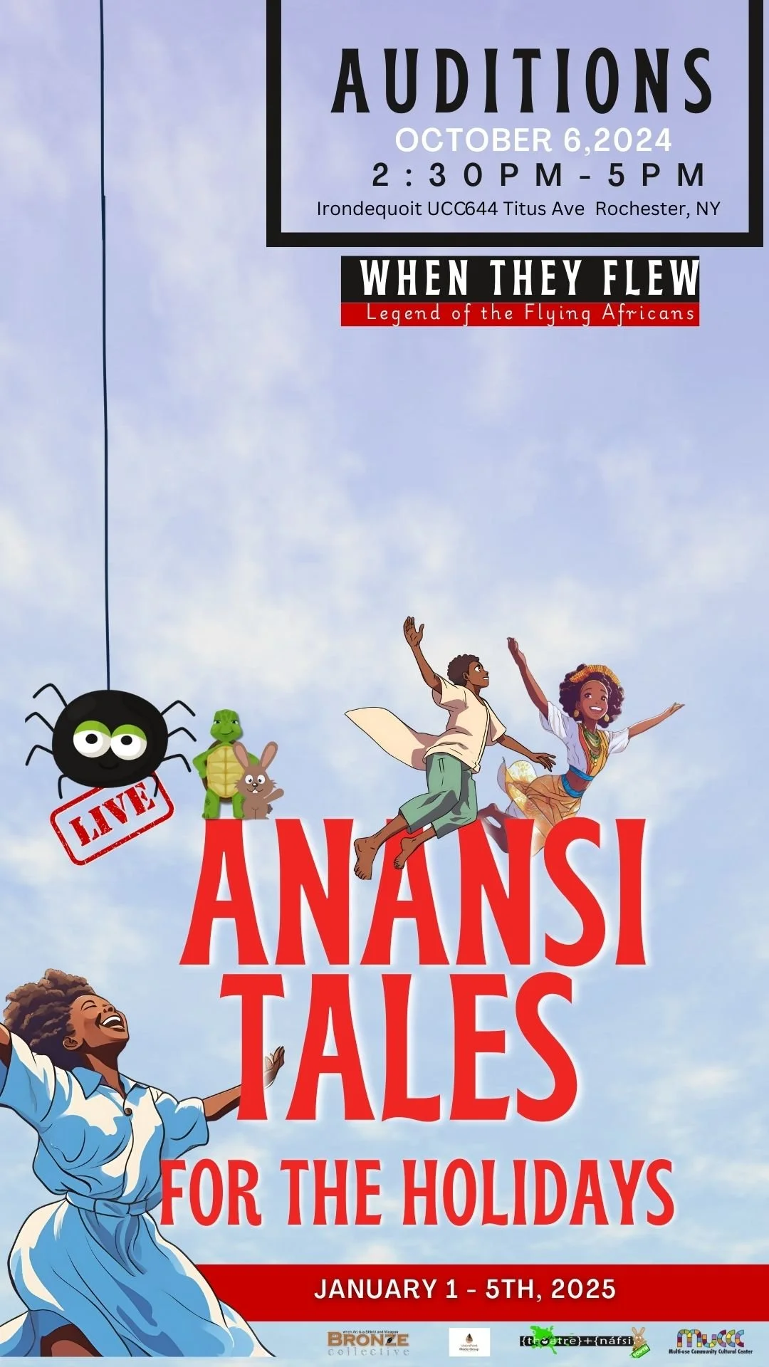 We're looking for ages 6 & up to expand our veteran cast for this end of the year production! We are holding open auditions for Anansi Tales for the Holidays. Folktales, family fun, storytelling, puppetry, and theater. Be apart of Rochester's newest annual tradition!